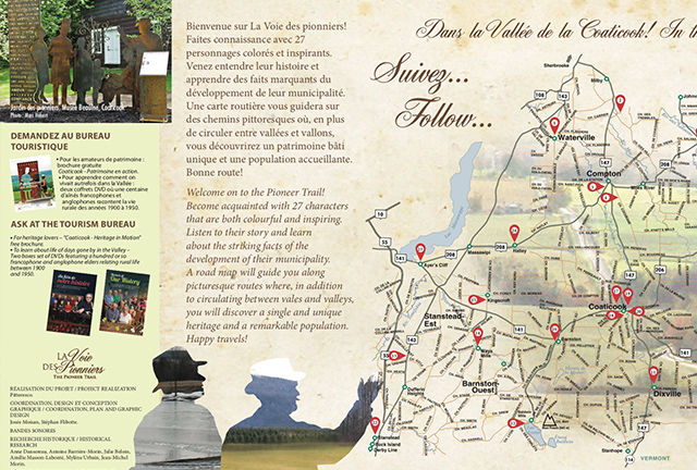 Aquaticook three sections map and Coaticook River access for canoes and kayaks. (French document)